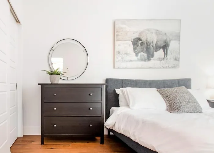 Hip, Stylish Apartment In Little Italy By Den Stays boasts a balcony and a dining area, complete with an ironing set and climate control, as well as a TV set. Guests are also provided with a separate toilet, a bath, and a shower. Additionally, you'll find hair dryers.